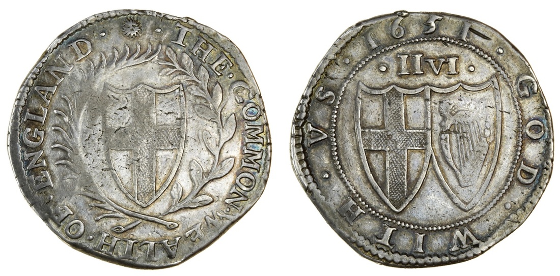 Commonwealth (1649-60), Halfcrown, 15.02g, 1651, m.m. sun, shield of England within palm and laurel wreath, rev. conjoined shields of England and Ireland, mark of value above, no central stop (ESC 17 {426} [R2], this coin; N.2722; S.3215), scratch by date, weak in areas, good very fine, rare