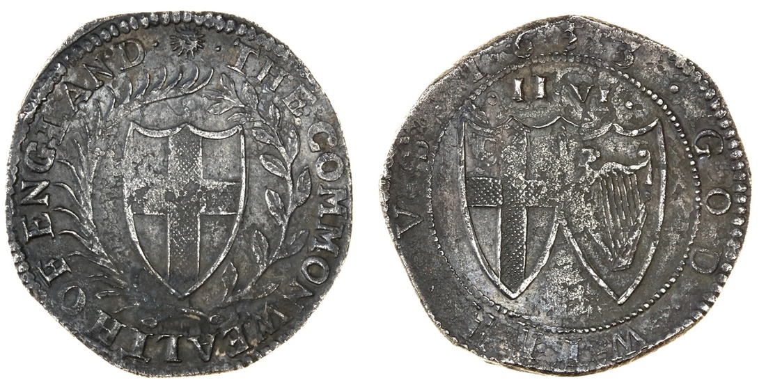 Commonwealth (1649-60), Halfcrown, 14.75g, 1653, m.m. sun, shield of England within palm and laurel wreath, only stops by mintmark, rev. conjoined shields of England and Ireland, mark of value above (ESC 33 {-}; N.2722; S.3215), dark toned and weak in places, about good fine
