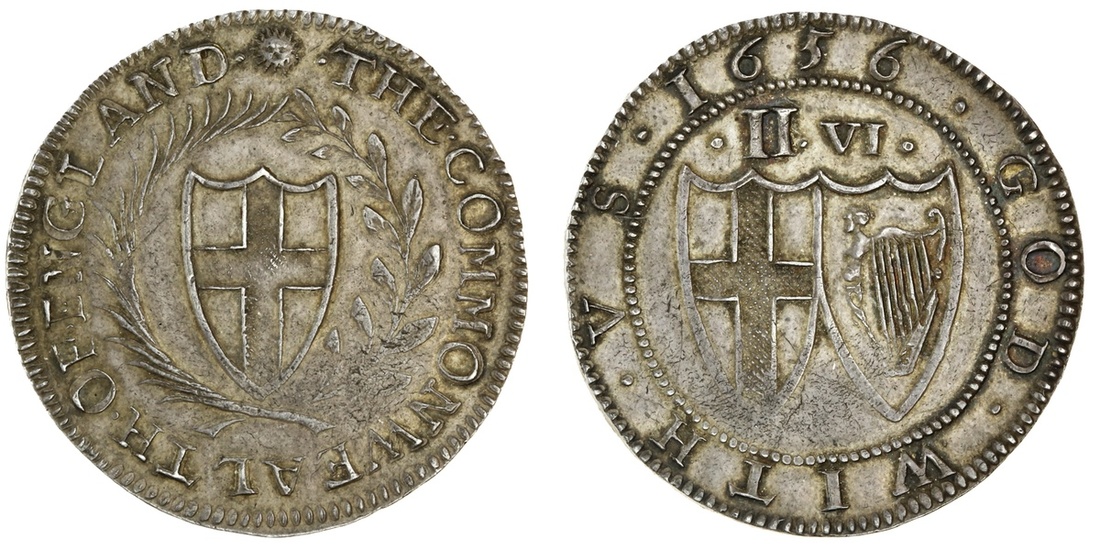 Commonwealth (1649-60), hammered Halfcrown of 'Fine Work', 14.97g, 1656, m.m. sun, shield of England within palm and laurel wreath rev. medal alignment, conjoined shields of England and Ireland, mark of value above, edge plain (ESC 50 {437B} [R6]; N.-; S.-), proof-like and lustrous, very rare