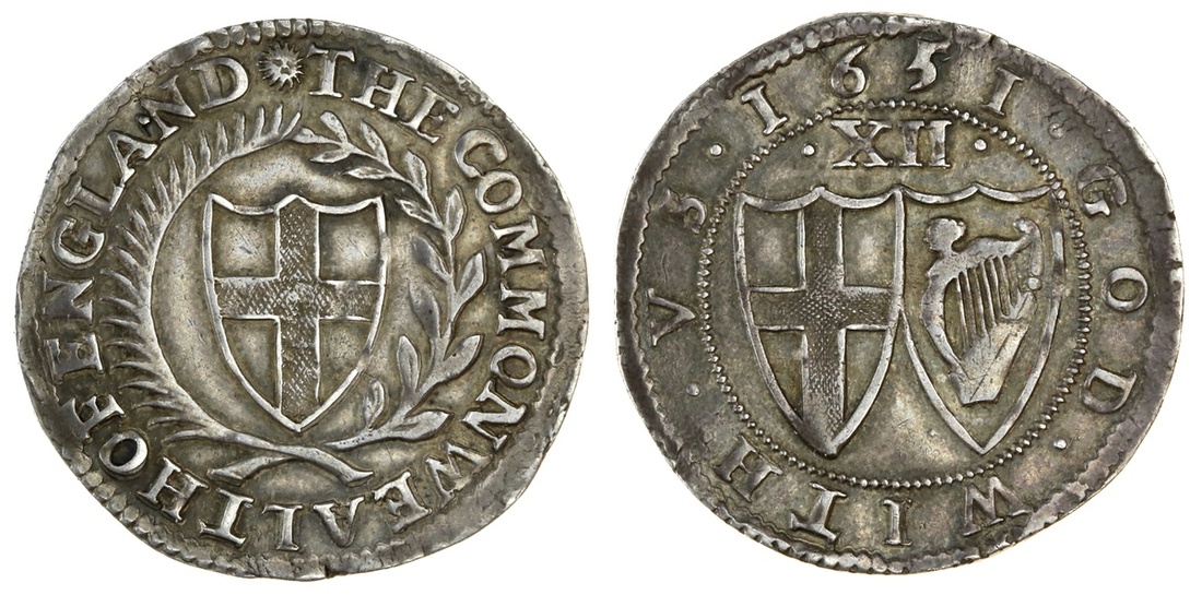 Commonwealth (1649-60), Shilling, 5.75g, 1651, m.m. sun, shield of England within palm and laurel wreath, no stops, rev. conjoined shields of England and Ireland, mark of value above (ESC 84 {-} [R2]; N.2724; S.3217), large flan, even strike, very fine