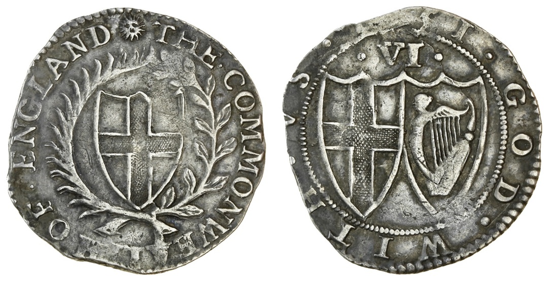 Commonwealth (1649-60), Sixpence, 2.96g, 1651, m.m. sun, no stops by mintmark, shield of England within palm and laurel wreath, rev. conjoined shields of England and Ireland, mark of value above (ESC 181 {1484A}; N.2726; S.3219), very fine