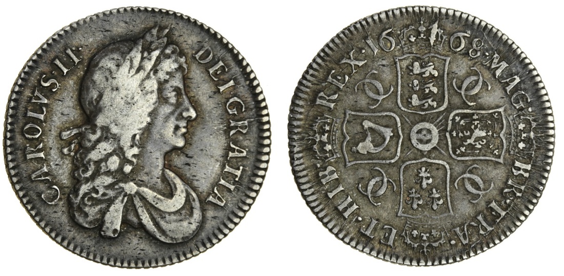 Charles II (1660-85), Shilling, 1668, second laureate and draped bust right, rev. crowned shields cruciform (ESC 511; S.3375), pleasing tone, good fine