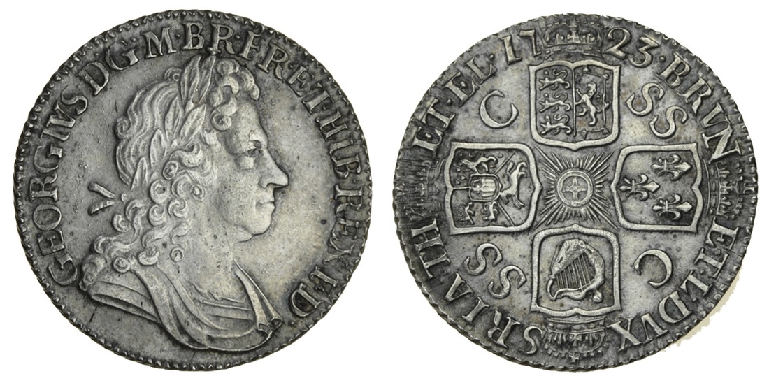 George I (1714-27), Shilling, 1723, first laureate and draped bust right, rev. crowned shields cruciform, SSC in angles (ESC 1586; S.3647), extremely fine