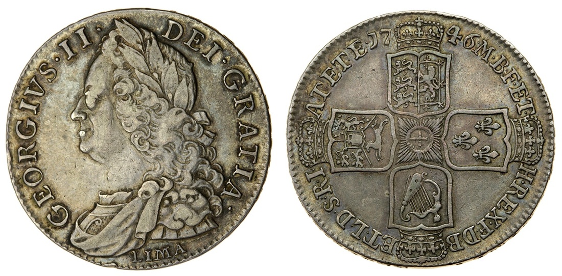 George II (1727-60) Halfcrown, 1746 decimo nono, laureate and draped bust left, lima below, rev. crowned shields cruciform (ESC 1688; S.3695A), very fine