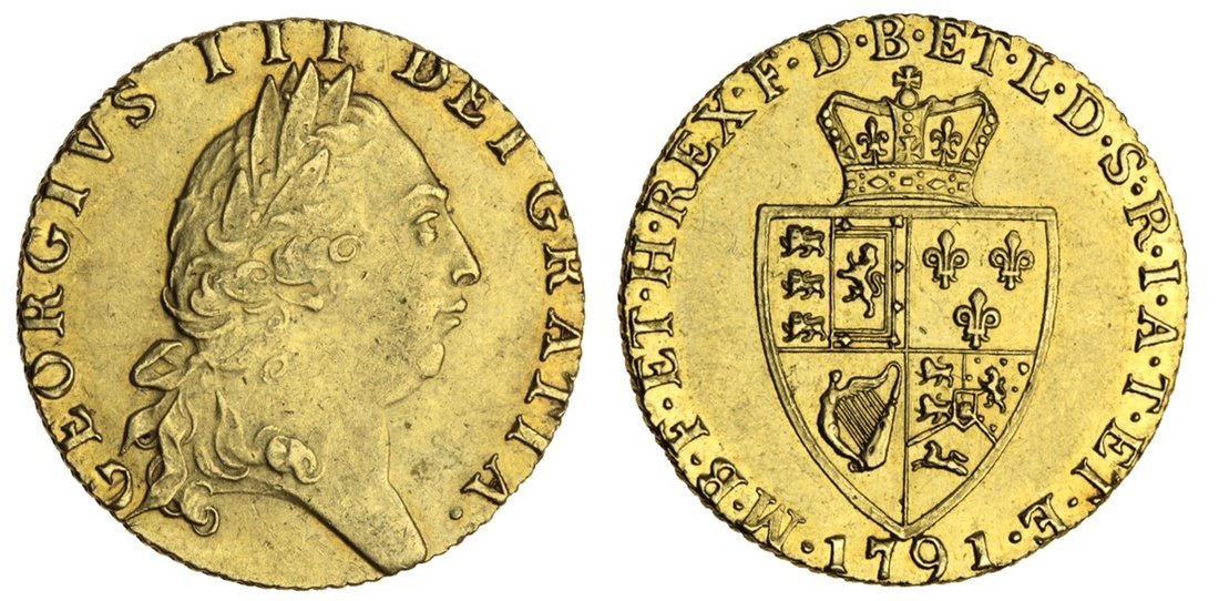George III (1760-1820), Spade Guinea, 1791, fifth laureate bust right (S.3729), about extremely fine