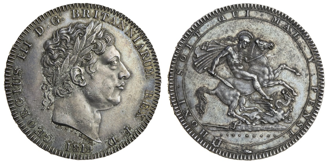 George III (1760-1820), Crown, 1819 lix, laureate head right, rev. St. George and dragon (ESC 2010; S.3787), good extremely fine, cabinet toning over original surfaces