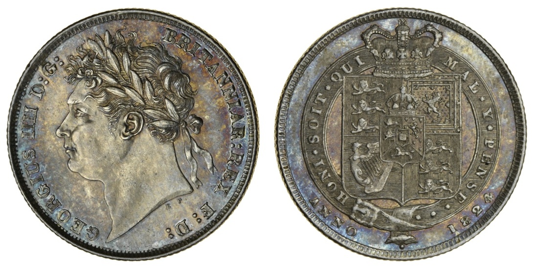George IV (1820-30), Shilling, 1824, laureate head left, rev. crowned shield in garter (ESC 2400; S.3811), almost uncirculated
