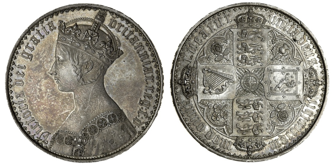 Victoria (1837-1901), Gothic Crown, 1847 undecimo, Gothic bust left, rev. crowned shields cruciform (ESC 2573; S.3883), hairlines, some light marks on attractive 'frosty' surfaces, otherwise uncirculated