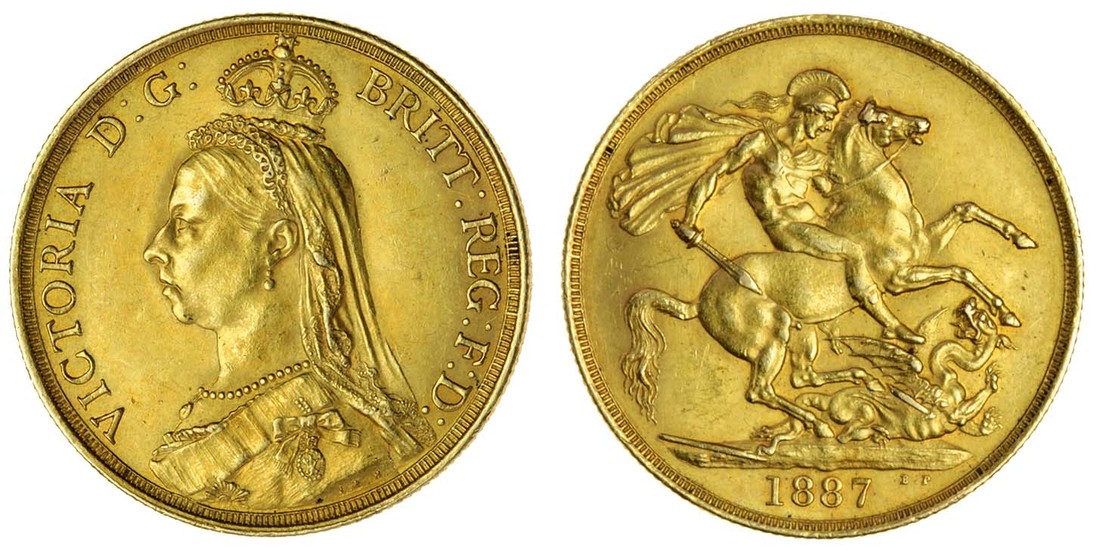 (g) Victoria (1837-1901) Two Pounds, 1887, jubilee bust left, rev. St George and dragon (S.3865), usual hairlines, otherwise original surfaces with toning in recesses, good very fine