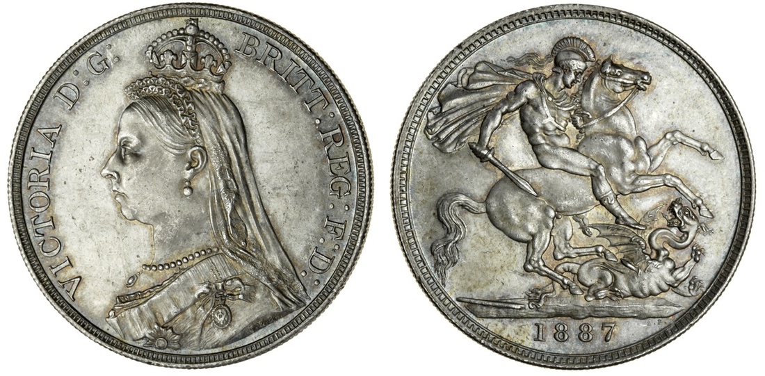 Victoria (1837-1901), Crown, 1887, Jubilee bust left, rev. St. George and dragon (ESC 2585; S.3921), grazes in fields, otherwise good extremely fine or better with lustre