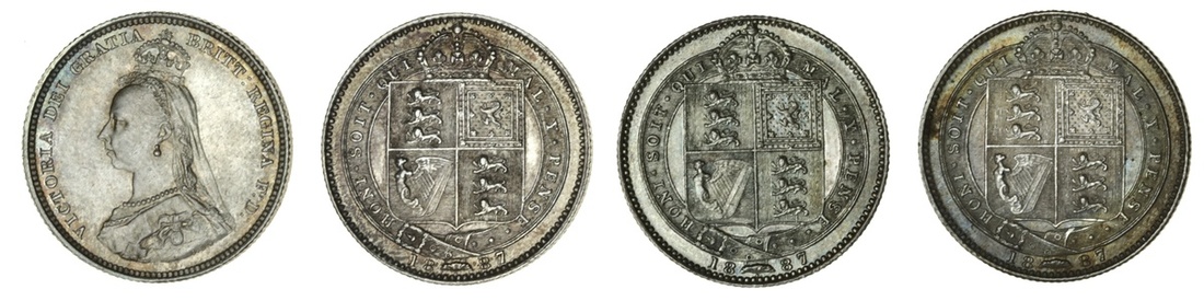Victoria (1837-1901), Shillings, 1887 (4), small Jubilee bust left, rev. crowned shield in garter (ESC 3137; S.3926), extremely fine to uncirculated (4)