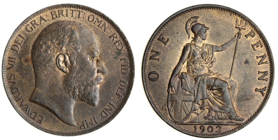Edward VII (1902-10), Penny, 1902, Low Tide type, bare head right, rev. Britannia seated right (S.3990A), some dark spots, otherwise near uncirculated with some lustre