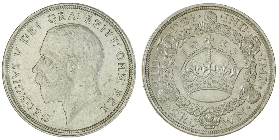 George V (1910-36), Crown, 1933, bare head left, rev. crown and date in wreath (ESC 3644; S.4036), small scratch on back of neck, extremely fine, with lustre