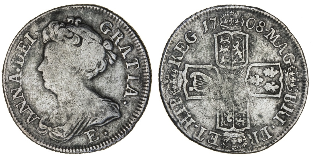 Anne (1702-14), Shilling, 1708, Edinburgh local dies, second draped bust left,