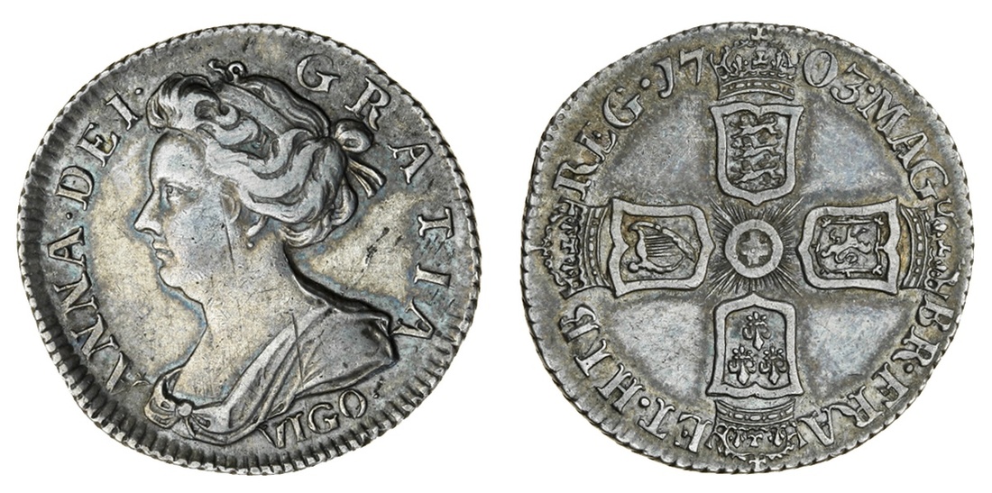 Anne (1702-14), Sixpence, 1703, second draped bust left,