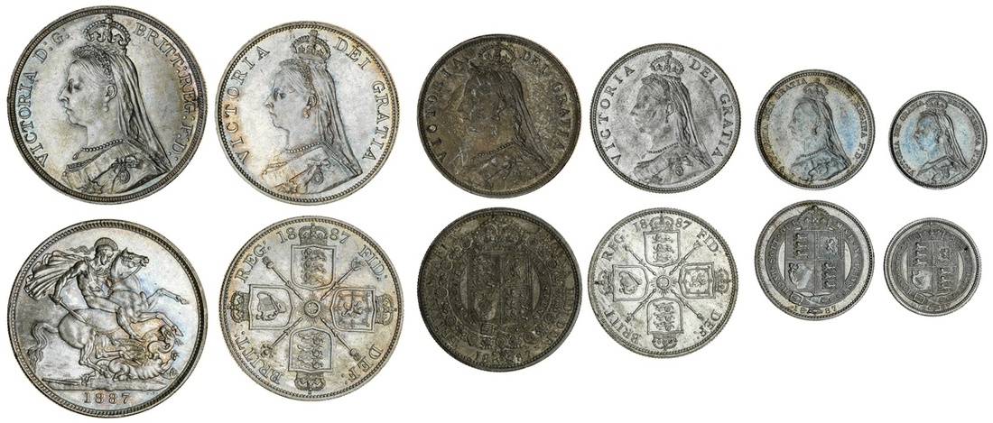 Victoria (1837-1901), Crown to Sixpence, 1887 (6), Jubilee bust left, rev. various types (S.3921; 3923-6; 3928), good extremely fine or better, the larger denominations exhibiting an attractive tone (6)