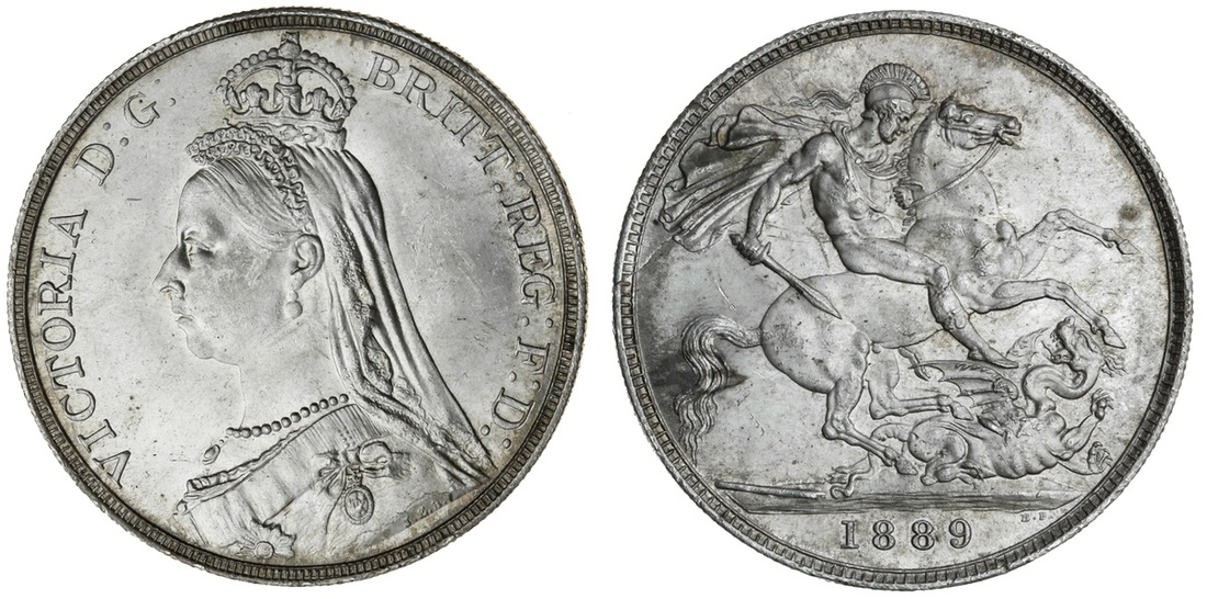 Victoria (1837-1901), Crown, 1889, Jubilee bust left, rev. St George and Dragon (ESC 2589; S.3921), light and occasional bagmark in fields with a hint of tone in reverse field, otherwise in glorious mint state