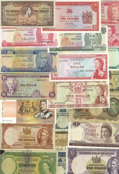 A selection of Commonwealth notes including Rhodesia/Southern Rhodesia (10), Barbados (6), Australia (13), Trinidad and Tobago (4), Belize (2), East Caribbean (2), Fiji (3), Barbados, Antigua and Barbuda, New Zealand (4), Bermuda, Bahamas