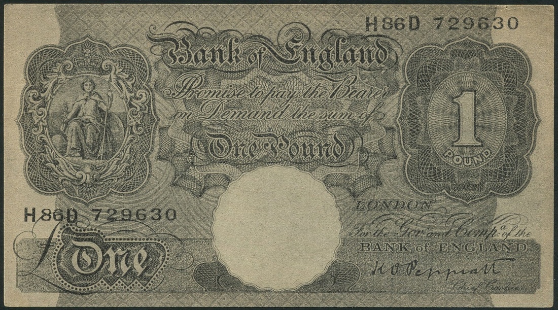 North African campaign, World War II, facsimile copies of Peppiatt £1 (2), black, Arabic text describing the fall of the British Empire and its currency