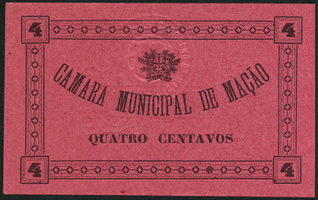 Camara Municipal de Macao, 1, 2, 3, 4, 5 centavos, also Manoel da Silva Catherino 4 centavos