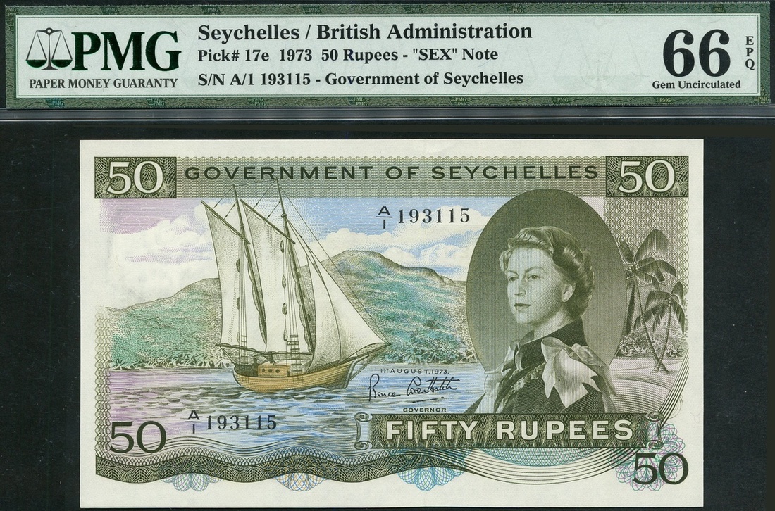 (Pick 17e, TBB B124e), in PMG holder number 66, gem uncirculated, EPQ, rare in such a high grade, the infamous SEX note