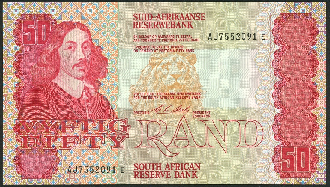 (x) South African Reserve Bank, a full set from the 1984, 2, 5, 10, 20 and 50 rand, blue, purple, green, brown and red respectively, Jan van Riebeeck at left