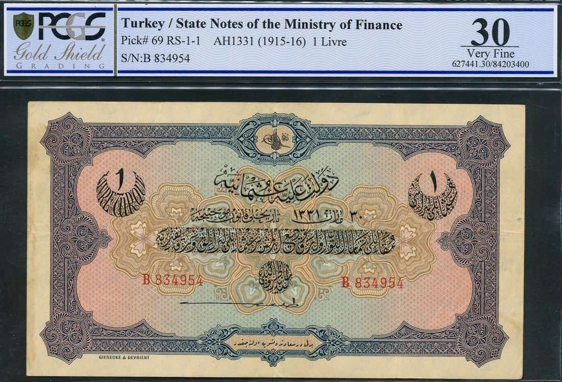 (x) State Notes of the Ministry of Finance, 1 livre, ND (1915-16), serial number B 834954, multicolour, value top left and right, ornate border, reverse, blue and pink guilloche patterns