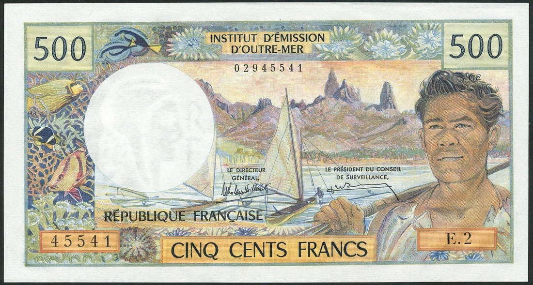 (x) Institut d'Emission d'Outre-Mer, 100 and 500 francs, ND (1971/1983), Banque de l'Indo-Chine, 20 francs, ND (1954), Noumea, 500 francs, ND (1985), 5 francs, ND (1926-), New Hebrides, 100 francs, ND (1975), French Pacific Territories, 500 francs