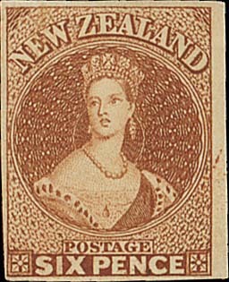 6d. brown with small to large margins, unused without gum, vertical crease at left not affecting fine appearance. S.G. 13, £3000. Photo