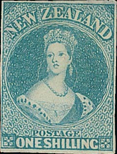 1/- blue-green with close to good margins, unused without gum, good colour and appearance, thinned along top, and a used example with good to large margins, repaired at top right. S.G. 17, £18,800. Photo