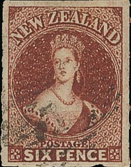 6d. red-brown with roulettes or traces thereof on two sides, indistinctly cancelled, fine. S.G. 55, £475. Photo