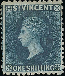 1869 no watermark, perf 11 to 12½ 1/- indigo, unused with large part original gum, good colour and fairly well-centred for this stamp, fine. R.P.S. Certificate (1961). S.G. 13, £375. Photo