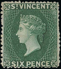 1872-73 perf about 15, 6d. deep blue-green with watermark upright, unused without gum, good colour, fine. Rare. S.G. 19c, £2250. Photo