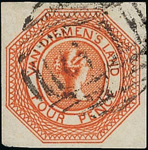 1853 Courier, first state of plate, 4d.bright red-orange with good to large margins, fine used. S.G. 5, £1000. Photo