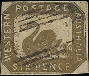 1857-59 imperf 6d. golden bronze with margins on three sides, touched at left, neatly cancelled by void obliterator, fine. R.P.S. Certificate (1950). S.G. 17, £2250. Photo
