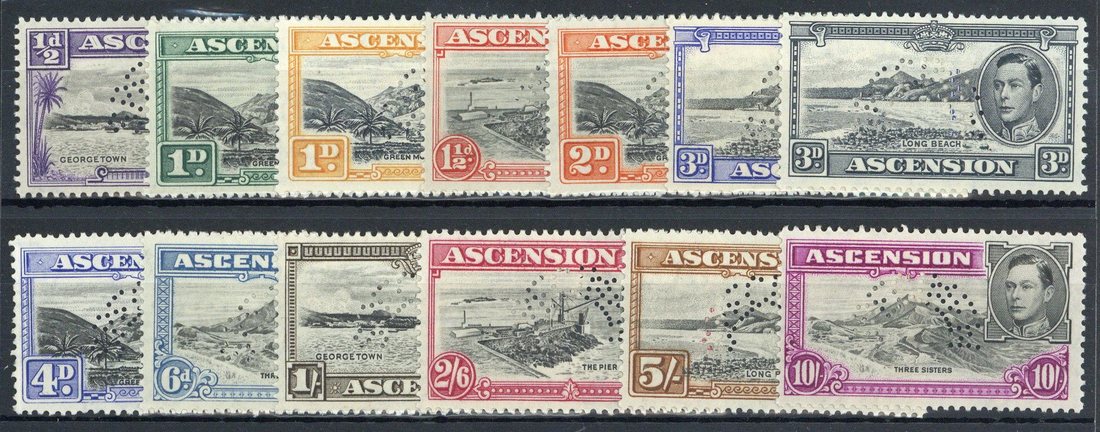 ½d. to 10/- set of thirteen perforated "specimen", large part original gum; fine. S.G. 38s-47s, £1,000