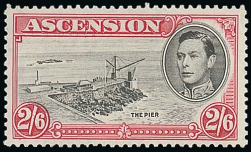 2/6d. black and deep carmine, perf 13½, variety frame printed double, one albino, fine mint. Particularly well-centred and extremely Rare. S.G. 45a, £5,000 Photo