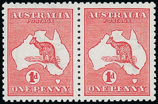1913 First watermark, 1d. red horizontal pair, the left stamp showing diagonal scratch through "ne" of "one", very fine unmounted mint. BW 4(H)d. Photo