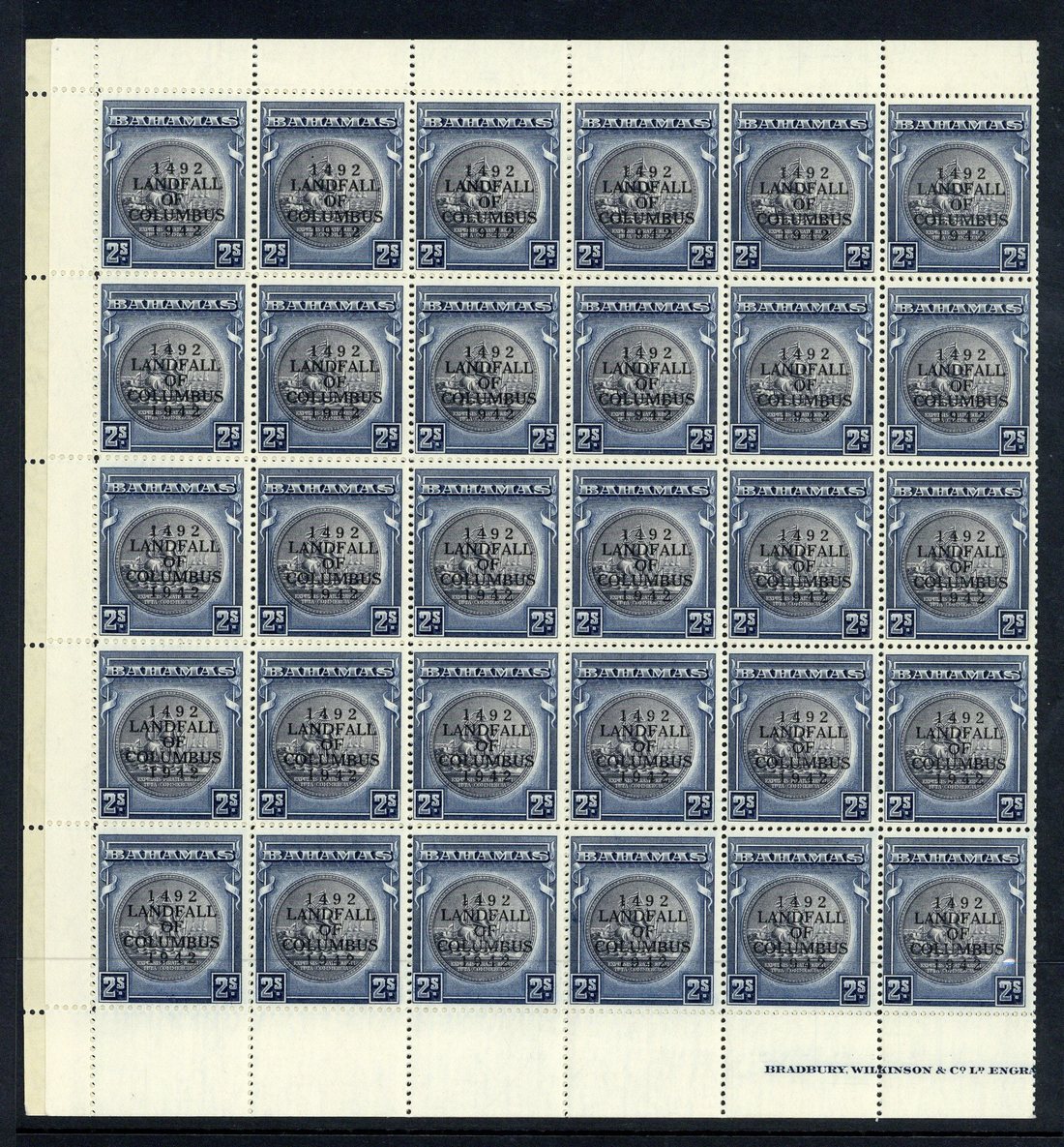 2/- brownish black and steel-blue complete sheet of sixty (folded vertically at centre) with sheet number "235", fresh unmounted mint. A very fine and rare multiple. S.G. 172b, £2,520