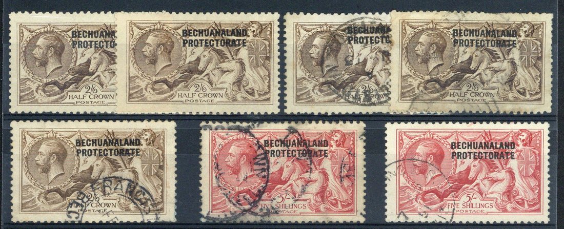 1913-24 De La Rue 2/6d. (2 mint, 2 used), Bradbury Wilkinson 2/6d. and 5/- (2) used (one with what appears to be a G.B. c.d.s.), fair to good. S.G. 85/86 group, 88, 89, £1,330