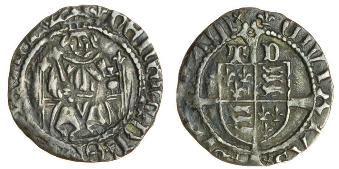 Henry VIII (1509-47), first coinage, Penny, Durham under Bishop Ruthall, 0.79g, m.m. lis, henric di gra rex agl z, saltire stops, king on throne holding orb and lis-topped sceptre, lis on pillars, rev. civi tas dvr ram, saltire stops, shield on long cross fourchée, t d above shield (N.1776; S.2331; Stewartby p.448 and pl.31/560 this coin), a bold very fine