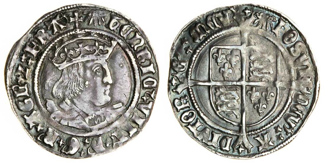 Henry VIII (1509-47), second coinage, Groat, 2.74g, m.m. sunburst, agl z fra, saltire stops, crowned bust right, rev. adivtore, saltire stops and in forks (N.1797; S.2337E; Stewartby p.471; Laker D), dark tone, very fine