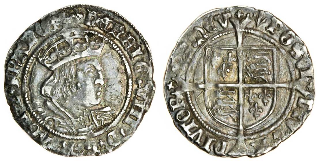 Henry VIII (1509-47), second coinage, Groat, 2.75g, m.m. lis/pheon, agl z france, saltire stops, crowned bust right, rev. adivtore, saltire stops and in forks (N.1797; S.2337E; Stewartby p.471 and pl.33/574 this coin; Laker D), struck from a rusty obverse die, a bold very fine, rare