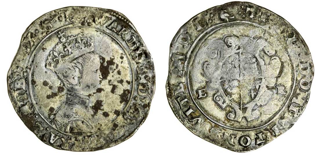 Edward VI (1547-53), Shilling 6oz, 1550, 5.04g, Tower II, m.m. martlet, edward vi d g agl fra z hib rex, bust 6, lozenge stops, rev. timor domini fons vite mdl, lozenge stops, garnished shield dividing e r (N.1919/1; S.2472B; Stewartby p.532), traces of old gilding, very fine with a strong portrait and an extremely rare mark with the sixth bust