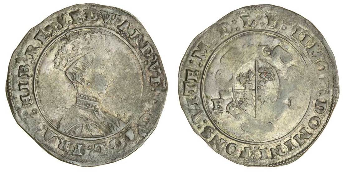 Edward VI (1547-53), Shilling 6oz, 1550, 5.25g, Southwark, m.m. y, edward vi d g agl fra z hib rex, bust 6, lozenge stops, rev. timor domini fons vite mdl, lozenge stops, garnished shield dividing e r (N.1919/2; S.2472C; Stewartby p.532; BNJ vol.31, pl.XII/11 this coin), almost very fine, extremely rare