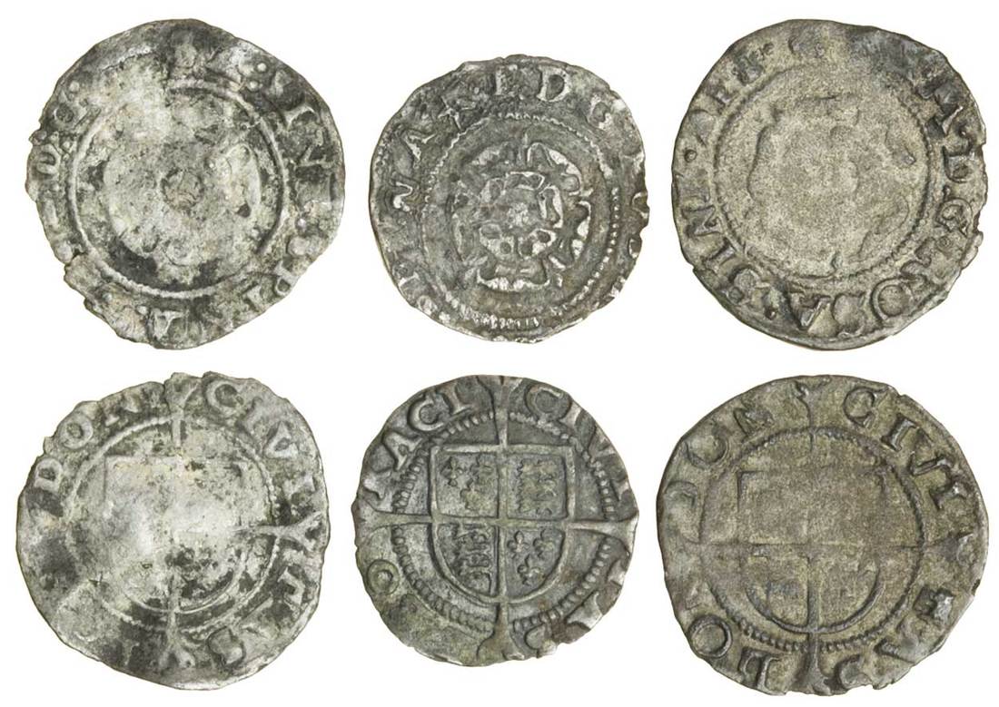 Edward VI (1547-53), base issue, Pennies (2), London, 0.46g, m.m. scallop, e d g rosa sine spina, rose, rev. civi tas lon don, shield on long cross fourchée; York, 0.61g, m.m. pierced mullet, rev. civi tas ebo raci; Philip & Mary (1554-58), base penny, 0.65g, m.m. halved rose and castle, p z m d g rosa sine spi, rev. as first (N.1945, 1946, 1976; S.2474, 2475, 2510A), the first fair, otherwise fine to very fine (3)