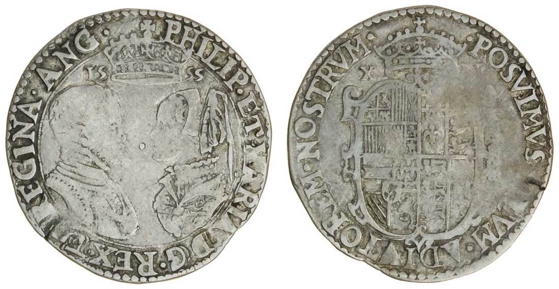 Philip and Mary (1554-58), Shilling, 1555, 6.19g, m.m. none, philip et maria d g rex et regina ang, facing busts, crown above dividing date, rev. posvimvs devm adivtorem nostrvm, crowned oval shield dividing x ii (N.1968; S.2500), fine