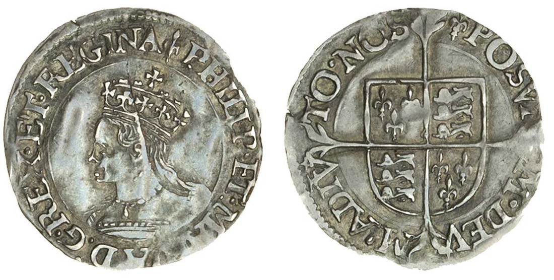 Philip and Mary (1554-58), Halfgroat, 0.94g, m.m. lis, philip et maria d g rex et regina, crowned bust left, rev. posvim devm adivto nos (N.1974; S.2509), cracked, otherwise very fine or better, very rare