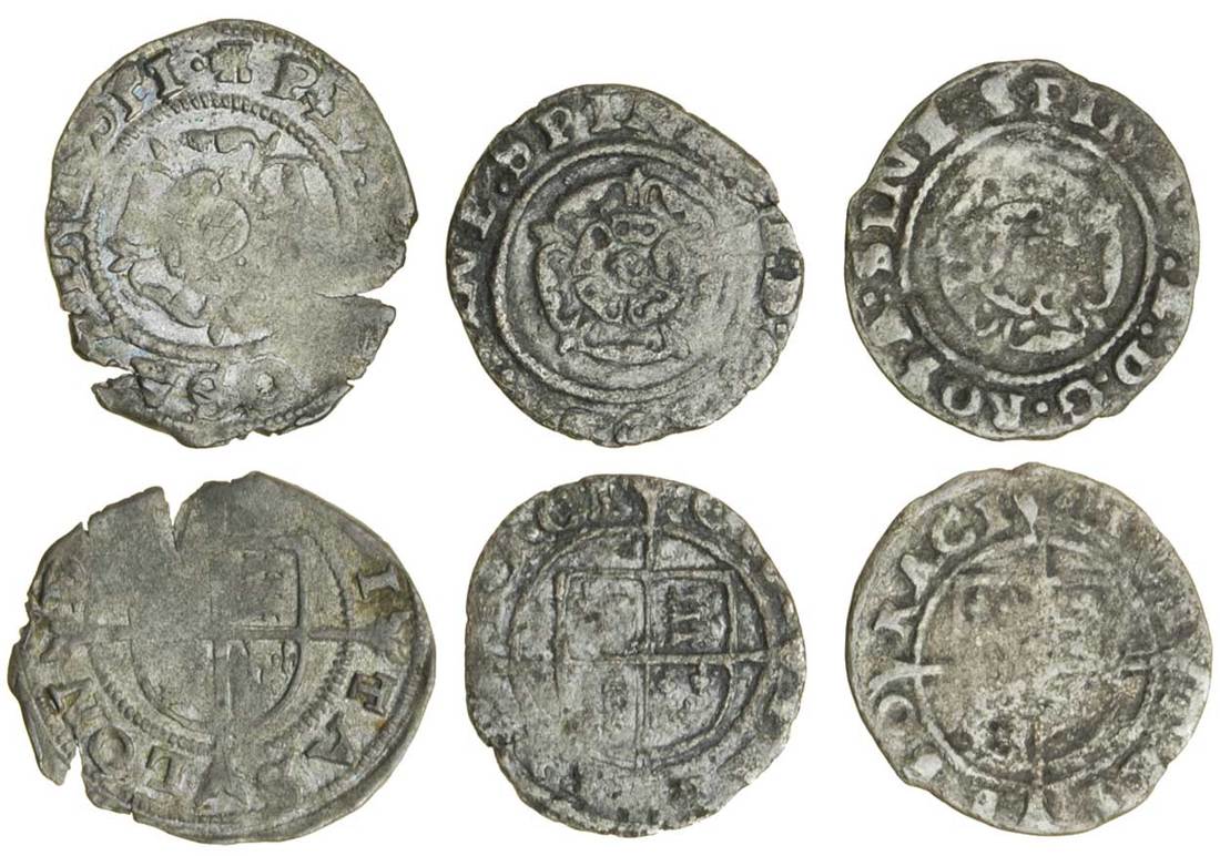 Philip and Mary (1554-58), Base Penny, 0.84g, m.m. halved rose and castle, p z m d g rosa sine spi, rose, rev. civi tas lon don, shield on long cross fourchée; Edward VI (1547-53), Base Pennies (2), York, 0.68g, 0.64g, m.m. pierced mullet, e d g rosa sine spina, rev. civi tas ebo raci (N.1976, 1946 (2); S.2510, 2475 (2)), the first with underlying lustre and edge splits, otherwise fine to very fine (3)