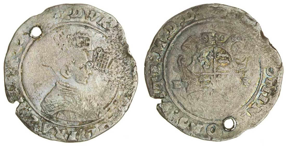 In 1560 the remaining base Shillings of Edward VI were cried down to either Fourpence-Halfpenny (portcullis) or Twopence-Farthing (greyhound) to reflect their silver content.